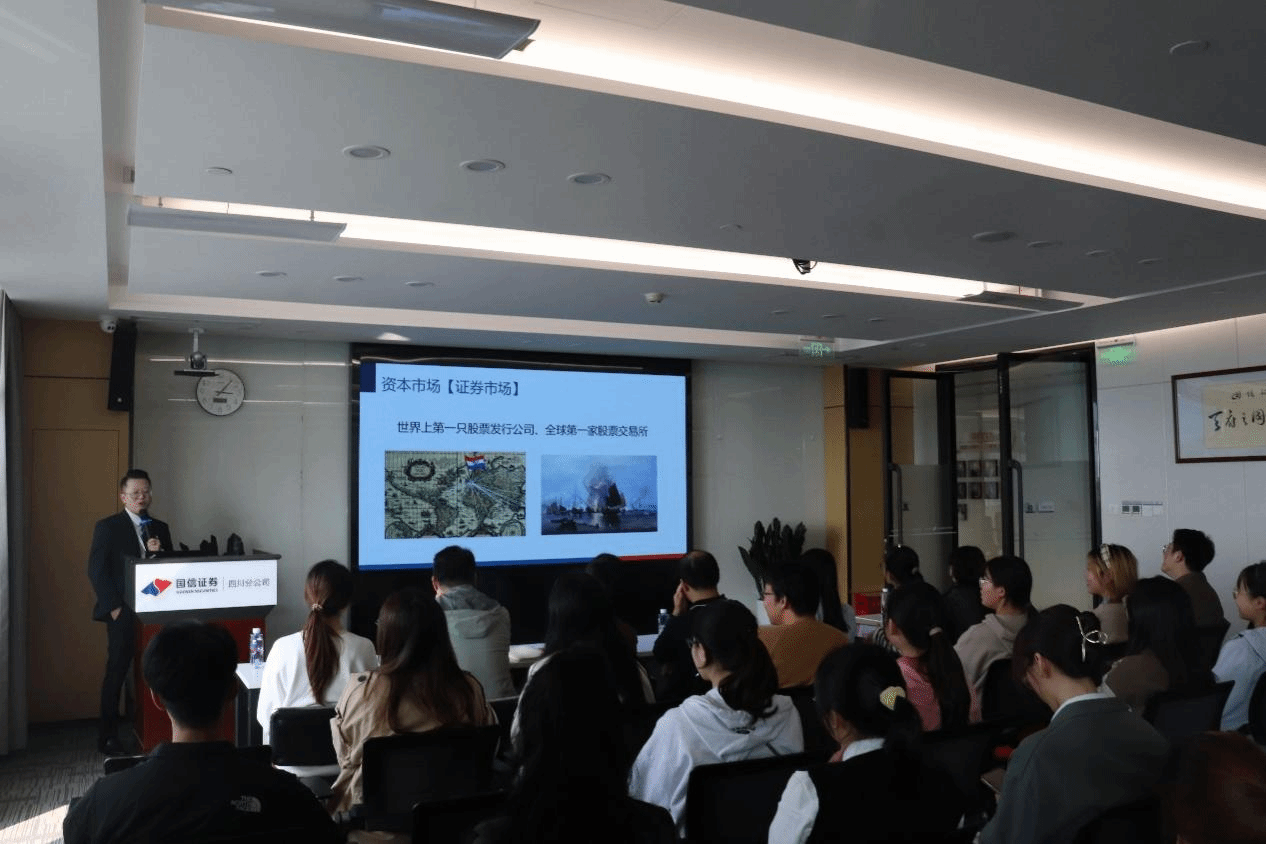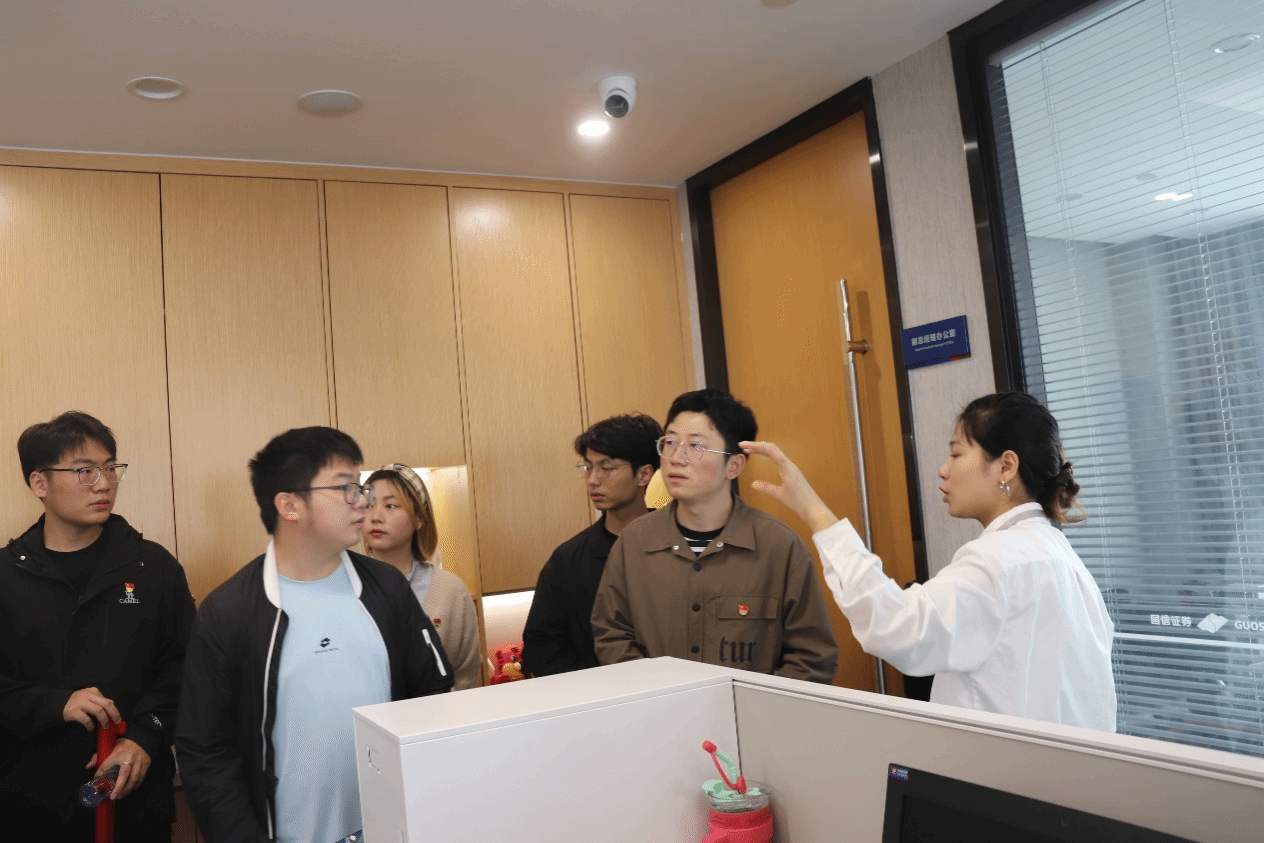 抵达后,国信证券的领导和工作人员热情接待,并对公司师生的到来表示热烈欢迎。随后,大家在工作人员的带领下进入会议室落座,国信证券理财三部的周圆皓经理简要介绍了此次活动的流程,本次党建共建活动正式开始。