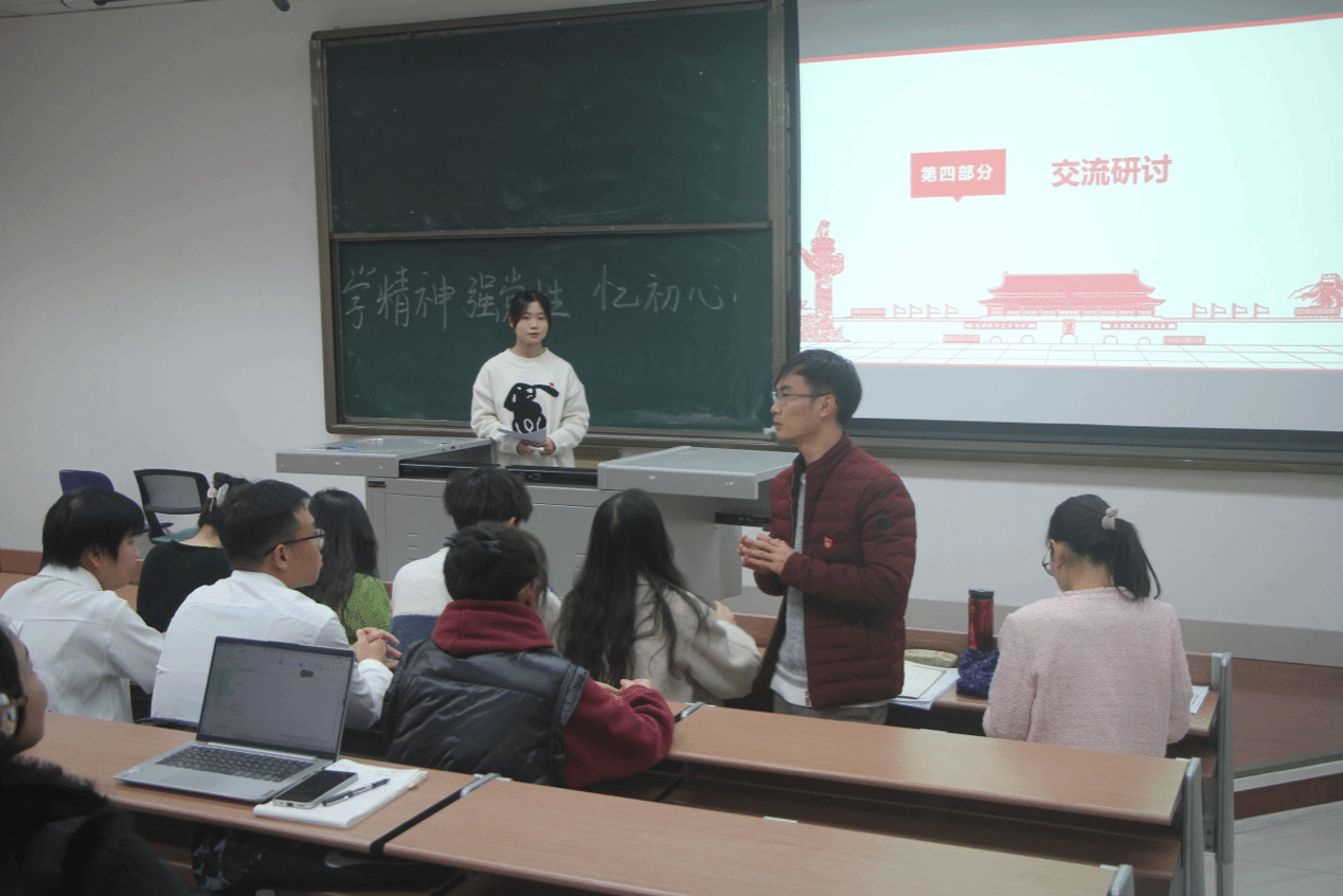 然后,本科第一党支部的彭琳芮带领大家学习领会习近平总书记在第三届“一带一路”国际合作高峰论坛开幕式上的主旨演讲精神。习近平总书记全面回顾了共建“一带一路”10年来取得的丰硕成果,深刻总结宝贵经验,系统阐述中国支持高质量共建“一带一路”的八项行动,为开启共建“一带一路”下一个金色10年指明了前进方向。我们要以习近平主席的主旨演讲精神为指引,推动共建“一带一路”经贸合作高质量发展,为建设开放型世界经济、推动构建人类命运共同体做出新贡献。
