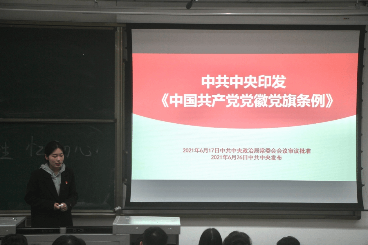 紧接着,本科第四党支部党员罗慧带领学习《中国共产党党徽党旗条例》。中国共产党的党徽党旗是中国共产党的象征和标志。通过对《中国共产党党徽党旗条例》的学习,HAHA体育本科党支部的同志们对党徽、党旗的明确用法、使用场合等都有了更深入的了解,规范党徽、党旗的使用,就是维护党的权威,是各级党组织和党员同志必须履行的政治责任。作为员工党员,应该坚定理想信念,不忘初心、牢记使命,努力学习,为实现中华民族伟大复兴贡献青春力量。