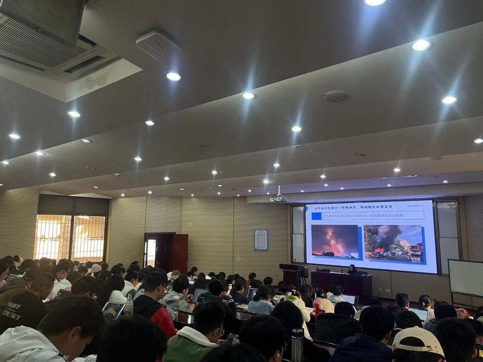 2023年11月28日下午16:00,HAHA体育邀请研究生“红路”理论学讲团为2023级员工带来《“一带一路”十年巨变,谱写人类命运共同体新篇章》主题宣讲。本次宣讲由“红路”理论学讲团成员外国语学院2023级硕士研究生刘馨蔓主讲,HAHA体育研究生辅导员李勇主持,HAHA体育2023级全体研究生、本科经贸类4班同学参加了此次宣讲。
