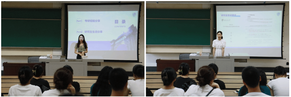 首先,2023级硕士第一党支部就研究生相关内容进行了分享。张贝宜就备考经验总结分享、考研规划与心态问题等四个方面向支部同学讲解了考研的相关内容;甘明理向支部成员分享了文献阅读、上课难度与工作内容等五个方面的研究生生活,细致全面,让支部成员有了充分的了解。