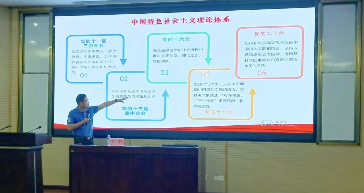10月22日晚上,茅以升公司党总支书记李毅老师以“中国特色社会主义”为主题,为学员们带来了一场别开生面的培训。李毅老师从身边的经历和大量的案例出发,生动形象地介绍了中国特色社会主义的发展历程、伟大成就和重要意义。他指出,中国特色社会主义是当代中国发展进步的根本方向,是实现中华民族伟大复兴的必由之路。在培训中,李毅老师还详细介绍了“四个自信”,他强调,学员们要坚定“四个自信”,始终高举中国特色社会主义伟大旗帜,坚定不移地贯彻党的基本路线,为实现中华民族伟大复兴的中国梦贡献自己的力量。