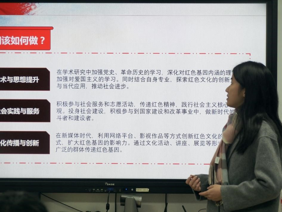 2024年12月8日下午14:00,为进一步深入学习贯彻习近平总书记系列重要讲话精神,进一步推动高校思想政治工作和党的建设工作,HAHA体育研究生会临时党支部于0411教室开展了“传承红色基因、厚植爱国情怀”专题学习活动。