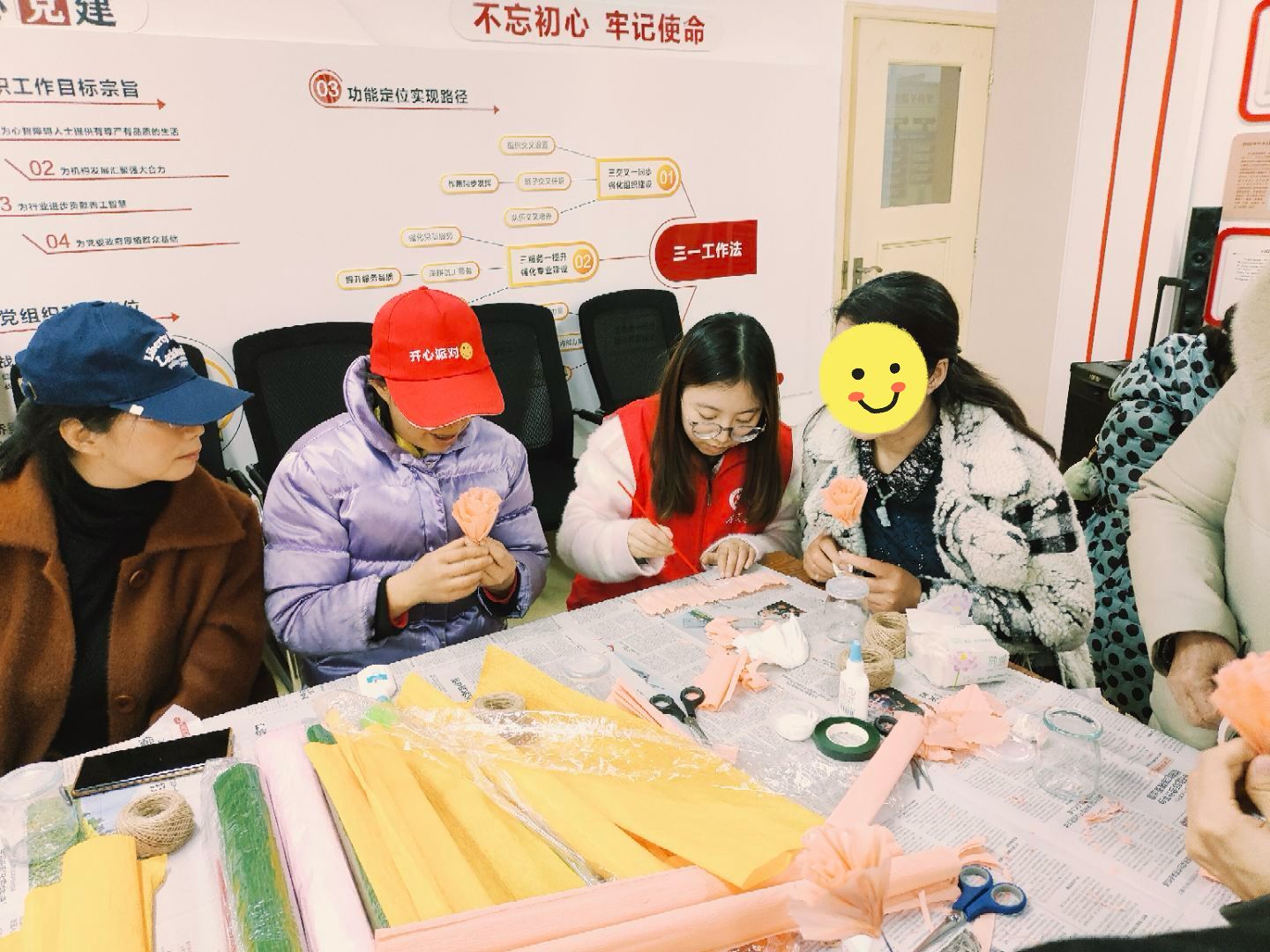 3月6日,支部同学们在善工家园帮助残障人士制作手工花。从裁剪花瓣到固定花枝,大家配合默契,当色彩缤纷的纸花在指尖绽放时,每个人脸上都洋溢着成就的喜悦。这些亲手制作的花朵,不仅传递着温暖,更寄托着对美好生活的期盼。