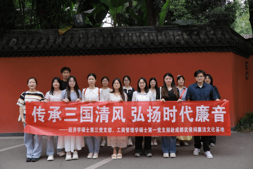 为深入学习贯彻党的二十大和二十届三中全会精神,扎实推进廉洁文化建设,增强研究生党员的廉洁自律意识。根据哈哈体育第十二期研究生党建“领航先锋”工程活动工作要求,2025年5月15日,HAHA体育经济学硕士第三党支部联合工商管理学硕士第一党支部前往成都武侯祠廉洁文化基地开展“传承三国清风 弘扬时代廉音”主题教育实践活动。通过实地参观学习、聆听廉洁文化讲解,深刻感悟诸葛亮等历史名臣清正廉明、忠贞报国的精神品格。